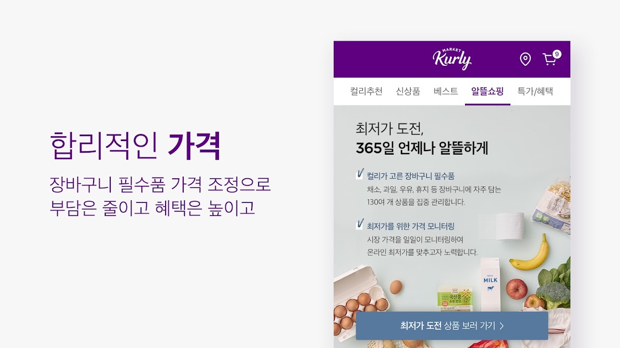 먼저 알아보고 찾는 모바일 장보기 앱 마켓컬리입니다.